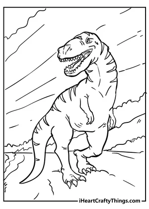 What It Is:This coloring sheet showcases a cartoon illustration of a Tyrannosaurus Rex (T-Rex). The ...
