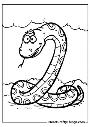 What It Is:This is a coloring sheet showcasing a cartoon image of a snake. The snake displays a chee...