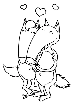 What It Is:This is a coloring activity sheet showcasing a cartoon-style image of two wolves in an em...