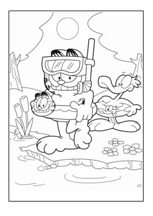 What It Is: This Garfield coloring sheet features the beloved cat sporting goggles and a floaty, pre...