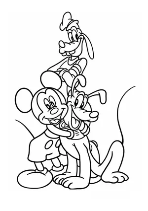 What It Is: This delightful Disney coloring activity showcases Mickey Mouse embracing Pluto, with Go...