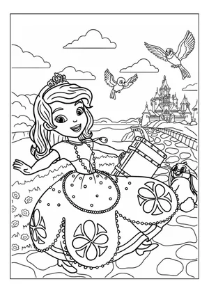 What It Is: This charming coloring page showcases Princess Sofia the First happily walking along a c...