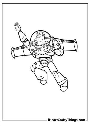 What It Is:This coloring page showcases a line art depiction of Buzz Lightyear from Toy Story. The i...