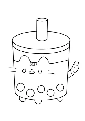 Pusheen Cat on Bubble Tea Cup Coloring Page