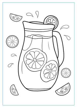 What It Is: This vibrant coloring page showcases a large pitcher filled with lemon wedges, a matchin...