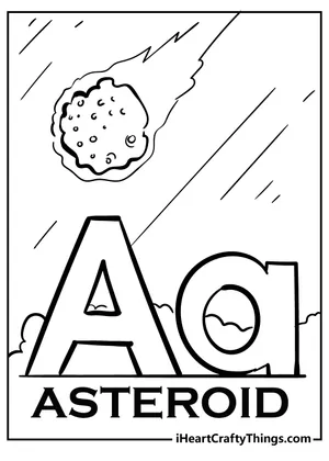 What It Is:This is a monochrome educational worksheet showcasing the letter 'A' for 'Asteroid'. It f...