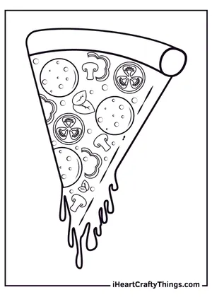 What It Is:A printable coloring page showcasing a detailed drawing of a pizza slice. The slice featu...