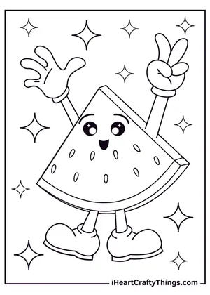 What It Is:This coloring worksheet showcases a cartoon watermelon slice character. The watermelon fe...
