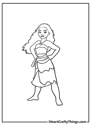 What It Is:This is a coloring sheet featuring a line drawing of a cheerful Moana character. She is d...