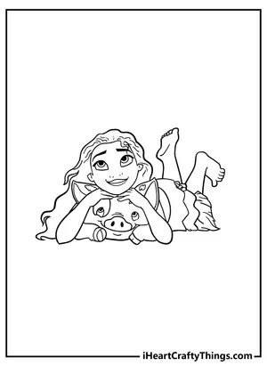 What It Is: A delightful Disney Moana coloring sheet showcasing Moana with her cute pet pig Pua, ado...