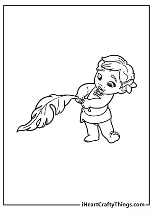 What It Is:This is a printable coloring page showcasing a cartoon illustration of baby Moana. She ha...