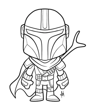 What It Is:This is a coloring sheet featuring a character from 'The Mandalorian.' The illustration d...