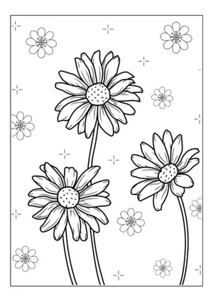 What It Is: This flower-inspired coloring sheet showcases three blooming daisies encircled by a patt...