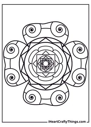 What It Is:This is a printable coloring sheet showcasing a geometric mandala-inspired design. The ar...