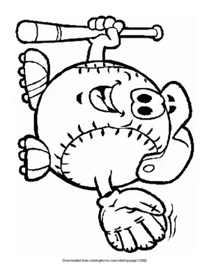 What It Is:This is a coloring sheet showcasing a cartoon baseball figure. The figure is circular and...