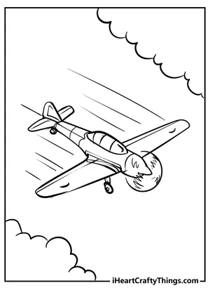 What It Is:This is a coloring sheet showcasing a cartoon airplane soaring through the clouds. The im...